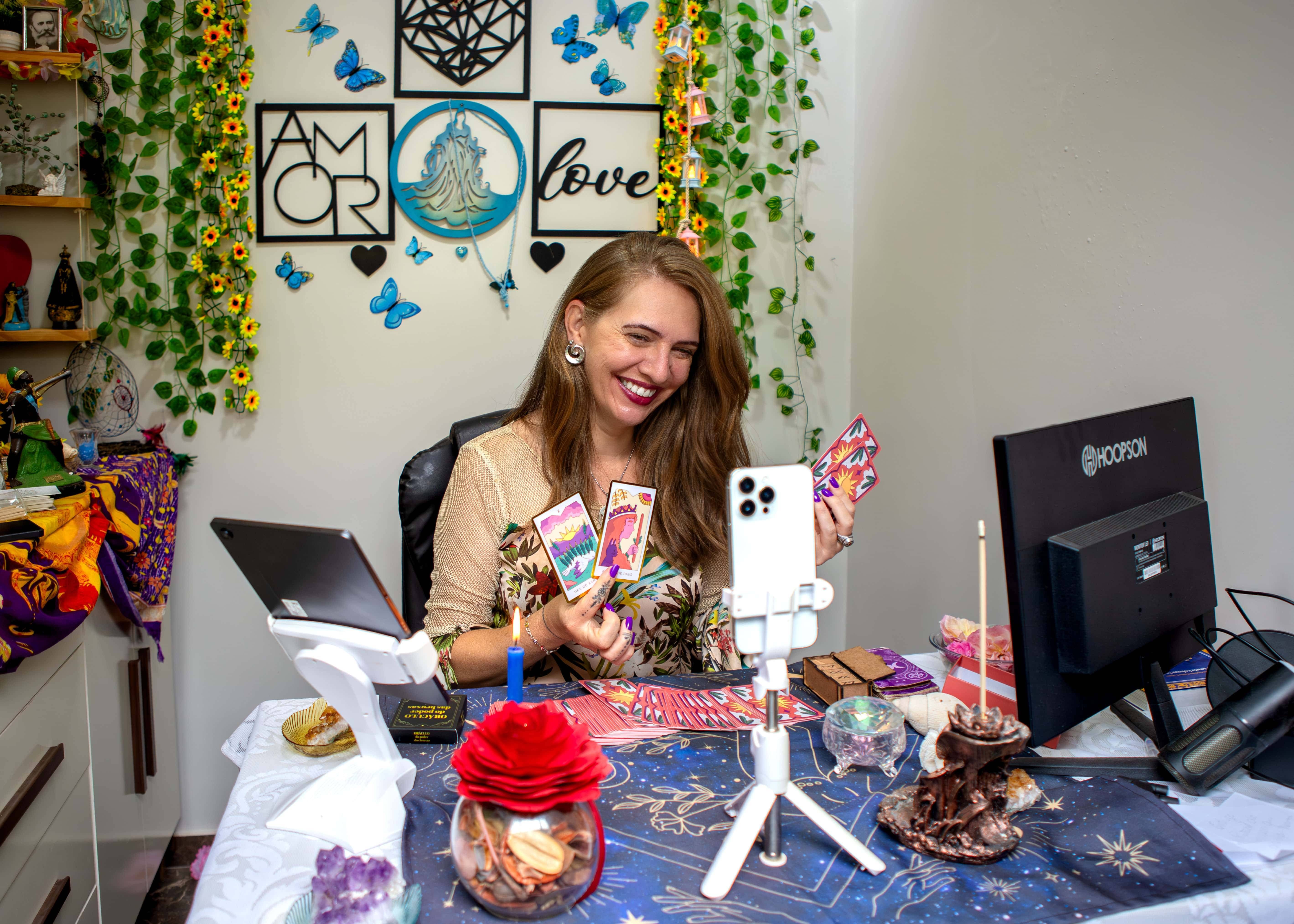 Além disso, trabalho com terapias holísticas que ajudam no equilíbrio emocional e espiritual, utilizando práticas como meditação guiada e a interpretação dos arcanos como ferramenta de conexão e entendimento.